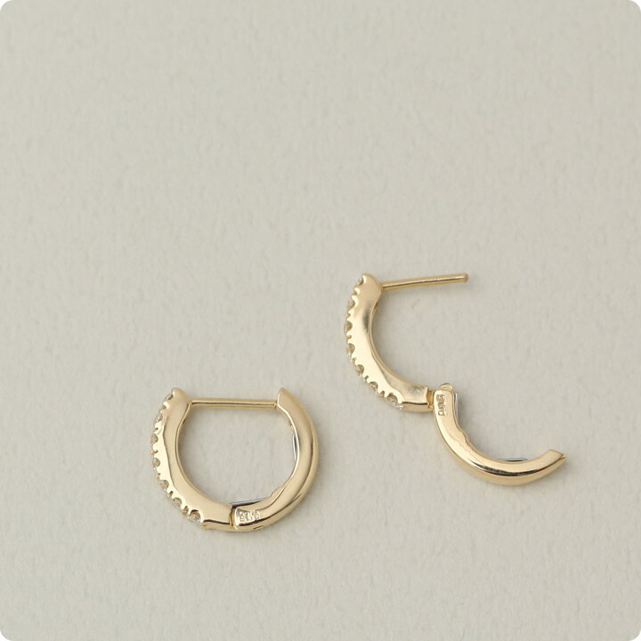 ・扱いやすい中折れタイプ ・内側にはバネが内蔵され、より着脱しやすい ・側面にK18刻印あり/ダイヤモンド0.15ct×2(0.3ct) ・本商品には当店独自の品質保証書を同封 ・モデル着用イメージ 側面に7石のダイヤモンドがセットされた、上品なフープピアス。